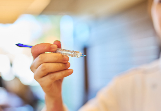 佐久間:そうですね。ガラスペンを使うときは、今からガラスペンを使いますよっていう環境をなんとなく整えないといけないです。机の上を綺麗にして、落とさないように自分を落ち着ける状態で使いますっていう、ちょっと儀式っぽい感じというか、そういう空気を作れるのも魅力かなという風に思っています。