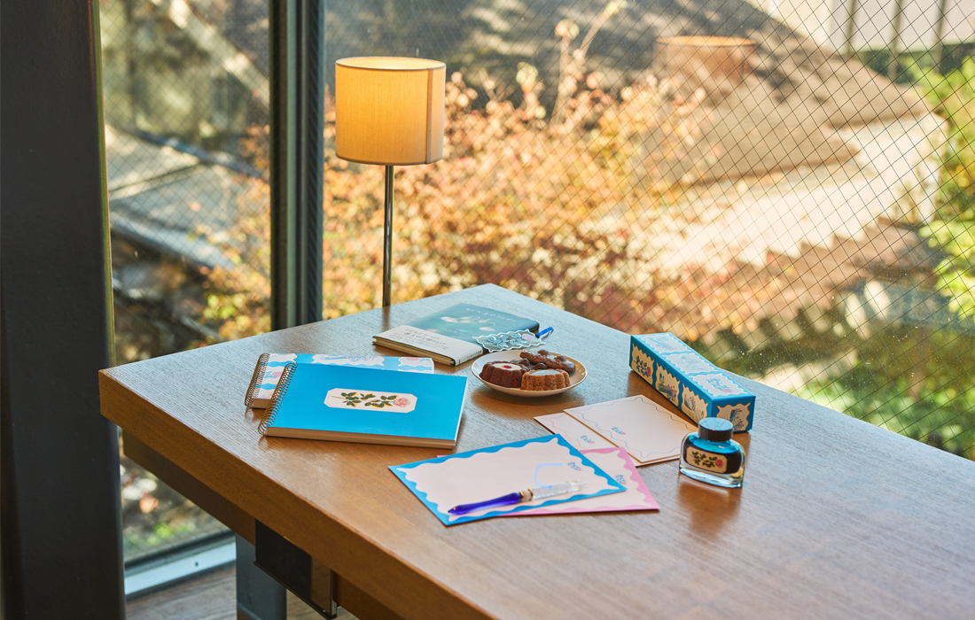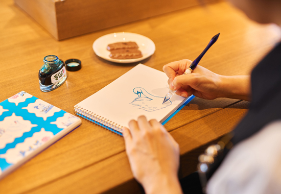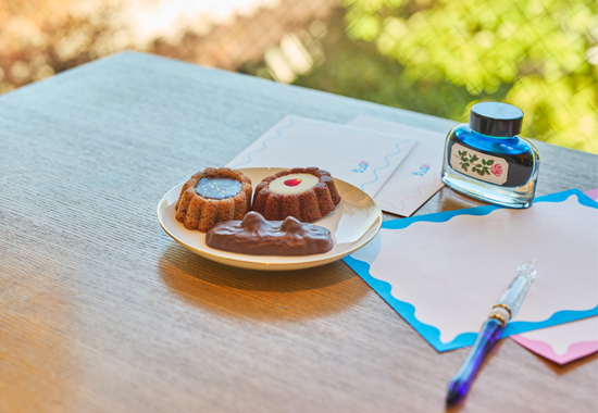 「ショコラサブレ」をモチーフにしたノートをはじめ、佐久間さんに監修していただいたオリジナルのガラスペンやインク、レターセットなどでチョコレートとともにリラックスできる豊かな時間をお過ごしいただけそうですね。