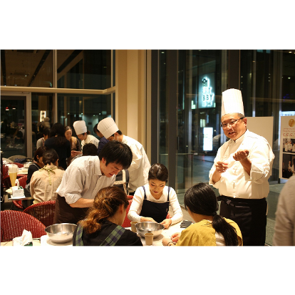 いよいよ湯煎したチョコレートをテンパリングしていきます。みなさん本格的なテンパリングを目にするのは初めてのようでした。実際に挑戦してみると刻々と変わるチョコレートの温度を実感されているようでした。温度をコントロールする為にみなさんで協力している様子はとても楽しそうでした。テンパリングされたチョコレートをモールドに充填し、冷やしたチョコレートを外すとどのグループのチョコレートも綺麗な艶でテンパリングは大成功のようでした。
