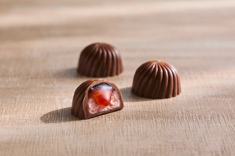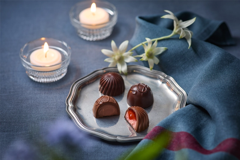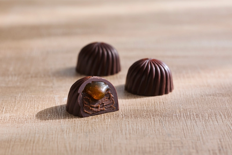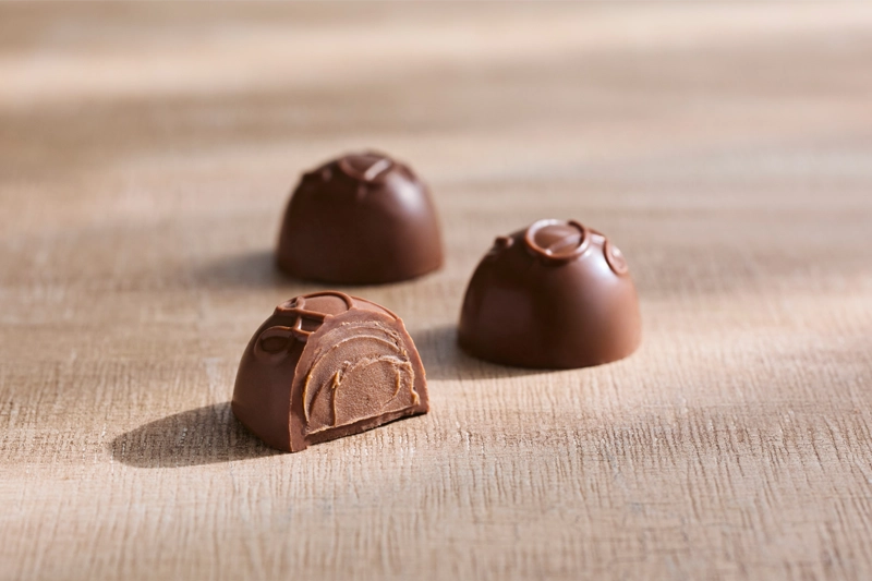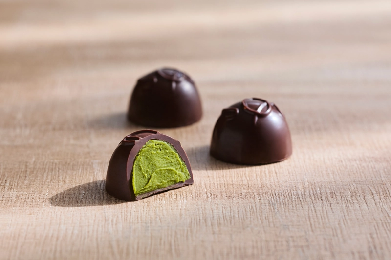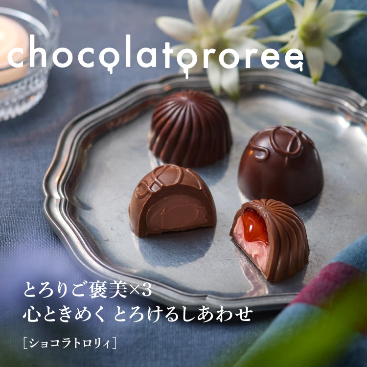 本格的な味わいのガナッシュうっとりなめらかなガナッシュは、口の中でゆっくりとろけ出し、素材の風味を存分にお楽しみいただるよう丁寧に作り上げました。コーティングのチョコレートとの一体感を追求した、こだわりの味わいです。