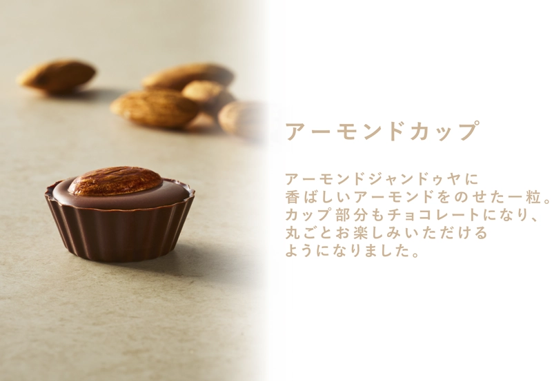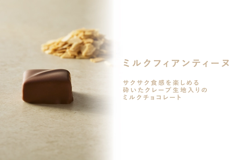 サクサクとしたフィアンティーヌ、とろりなめらかなキャラメル、カリっとしたアーモンドなど、味わいの違いだけでなく食感の違いでもお楽しみいただけるように仕立てています。