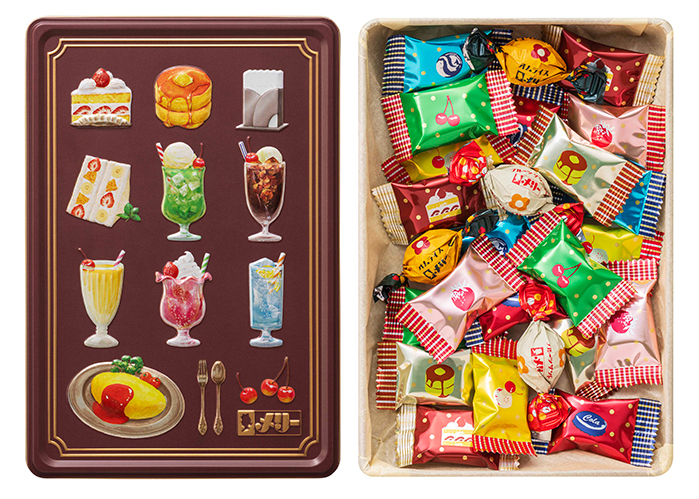 今年はデザインを全面リニューアルいたしました。「オムライス風」や「ミックスジュース」など新フレーバーも多数登場いたしますので、さまざまな種類のチョコレートをお楽しみください。