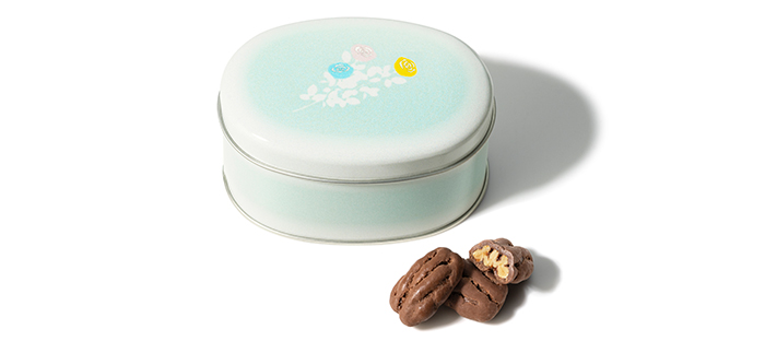 ローストしたペカンナッツを甘く香ばしく キャンディングしミルクチョコレートで包みました。チョコレートの甘みとナッツの香ばしさの絶妙なバランスがあと引く美味しさです。