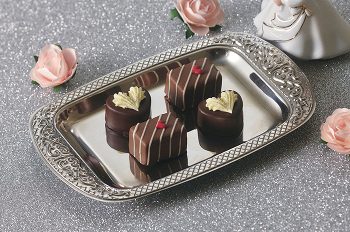 ハートやお花をプリントしたチョコレートやシンプルにデコレーションしたチョコレートはシトラスカモミールやミックスベリーローズ、キャラメルなどを使用した6種類。