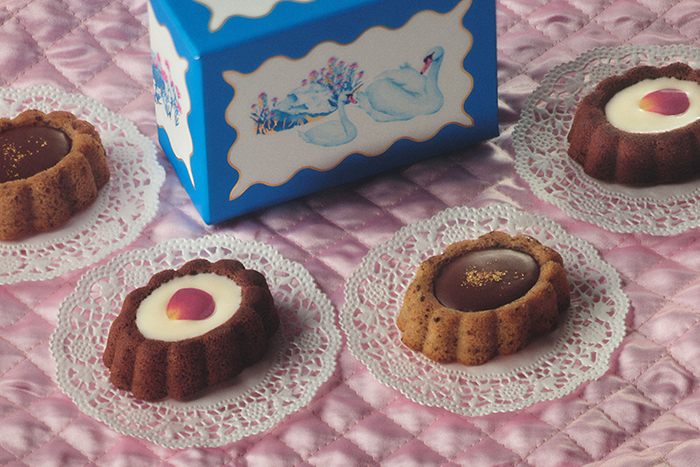 香ばしいアーモンドのパウダーを入れてくちどけよく焼き上げた生地に、コク深いキャラメルチョコレートを合わせました。 美味しさ際立つ素材感と優しい甘さにほっと心癒される味わいです。真っ白なうさぎと鮮やかなブルーのパンジーが描かれたピンクのパッケージは思わず目を引く可愛さです。