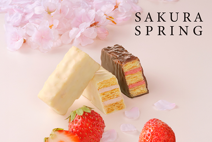 「さくら」と「あまおう苺」、ミルフィーユのサクサク軽い食感と一緒に、2つの異なる春の味をお楽しみいただけます。