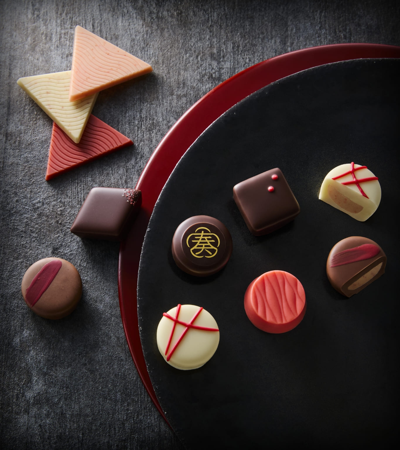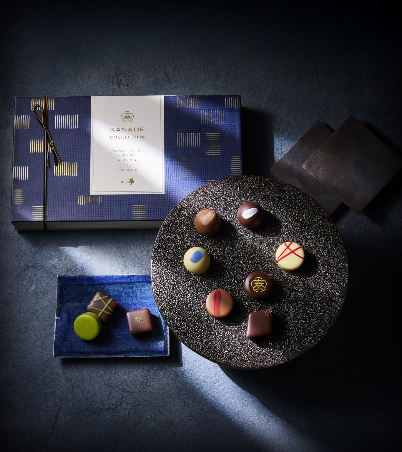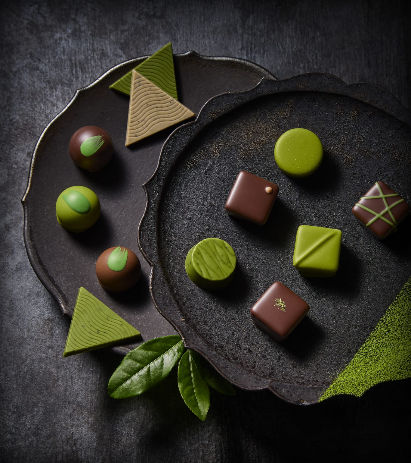 奏のためにブレンドした抹茶や上林金沢茶舗の加賀棒茶®使用のチョコレート詰め合わせ。