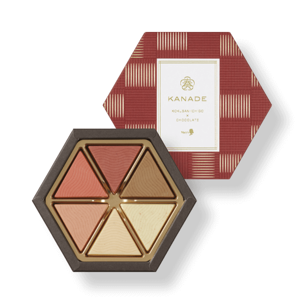 苺の品種の違いをチョコレートで楽しめる、6種類のタブレット。