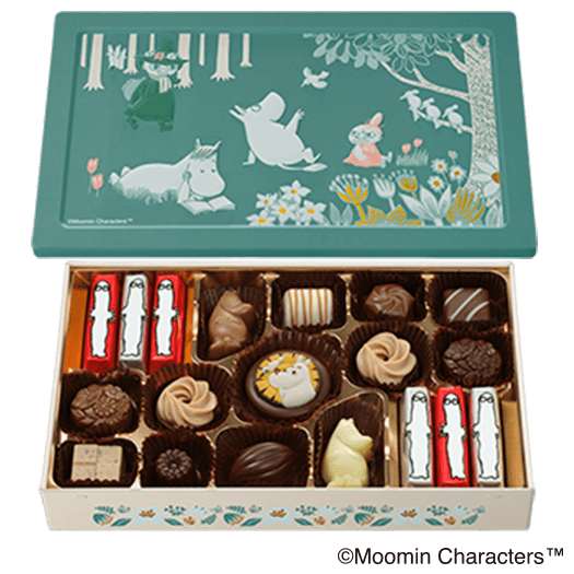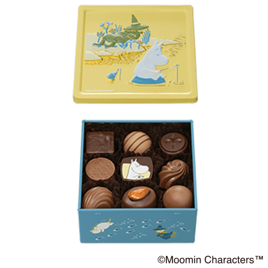- ムーミンたちと穏やかな森<br>(アソートチョコレート)ムーミンたちが森の中で過ごしている様子を描いた缶に、<br class='-pc'>チョコレートを詰め合わせました。