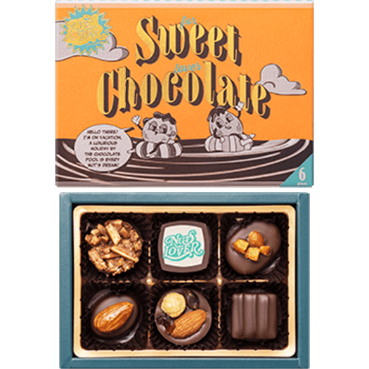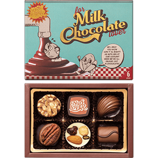 - ナッツアソートfor ミルクチョコレートラバーヘーゼルナッツやペカンナッツなどを、<br class='-pc'>相性の良いチョコレートと合わせた6種類の味わいが楽しめるアソート。<br class='-pc'> ”ナッツ×うっとり甘い味わい”がお好みの方におすすめです。<br class='-pc'>食感が楽しいキャラメルアーモンドロシェはこのアソート限定です。