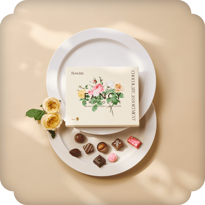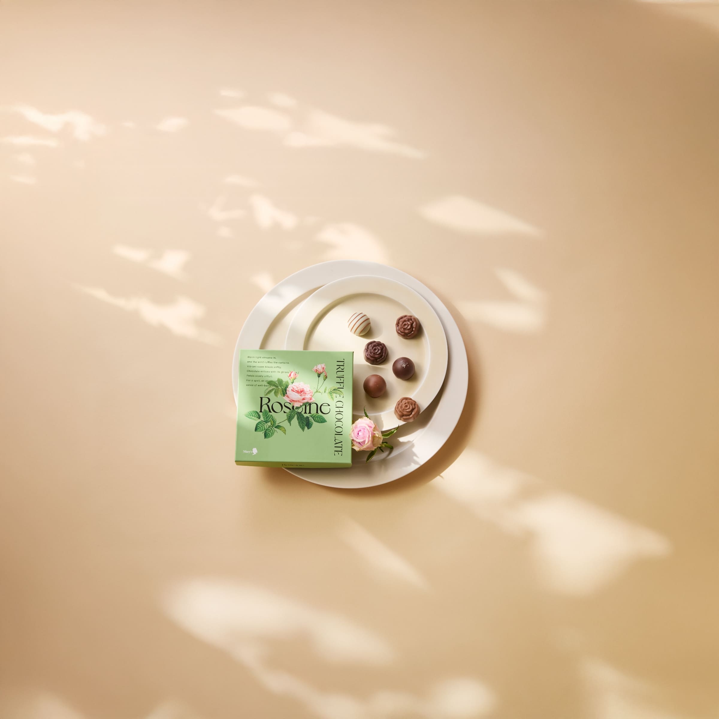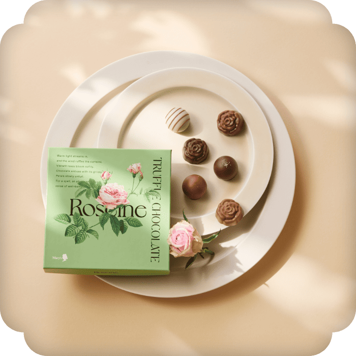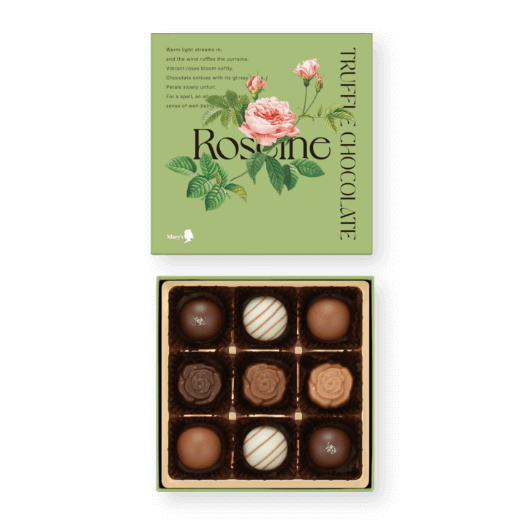 まろやかなナッツの風味を感じるジャンドゥヤや、コクみのある香ばしいキャラメルをトリュフチョコレートにしました。 3種類のくちどけなめらかなトリュフチョコレートと、カカオ感の異なる薔薇の形のプレーンチョコレートの詰め合わせです。